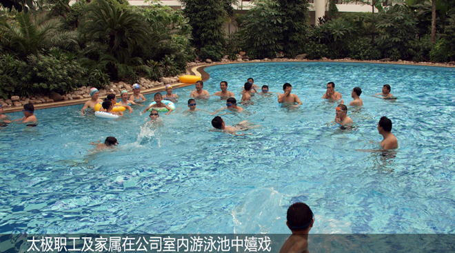“上班努力工作,下班享受生活”,太極公司非常重視員工生活,視員工為親人,為他們提供一流的工作環(huán)境,高標(biāo)準(zhǔn)的員工餐廳,舒適的公寓,休閑的運(yùn)動(dòng)場(chǎng)所,讓員工時(shí)刻感受到太極大家庭的溫暖。2006年太極公司在緊鄰廠(chǎng)區(qū)另購(gòu)?fù)恋?0畝,投資8000余萬(wàn)建成了約6萬(wàn)平米的職工單身公寓樓,每人50平米房間,統(tǒng)一配置電視、網(wǎng)絡(luò)、洗浴間、床柜、空調(diào)、暖氣、桌椅一應(yīng)俱全。生活區(qū)還配備了3D電影院、超市、兒童樂(lè)園、衛(wèi)生所、棋牌室、健身房、乒乓球室、臺(tái)球室、羽毛球館、籃球場(chǎng)、露天健身器械等,并不斷舉辦各種文化體育活動(dòng)豐富職工生活。