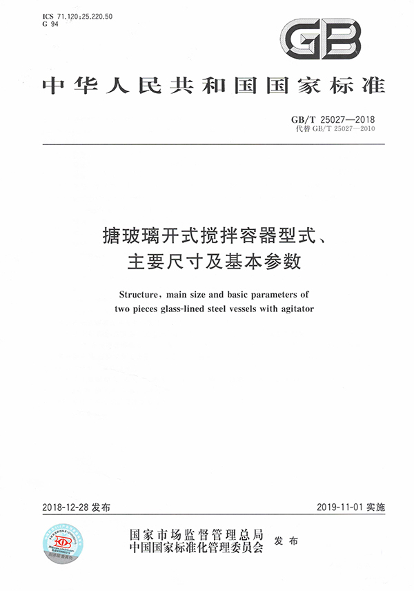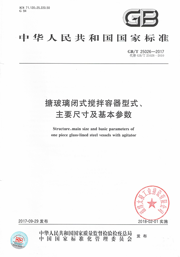 起草制定《搪玻璃閉式攪拌容器型式、主要尺寸及基本參數(shù)》行業(yè)國家標準