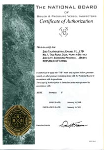 專業(yè)機構(gòu)的認證與認可,是對我們太極產(chǎn)品質(zhì)量及管理的肯定。要向用戶提供高質(zhì)量高品質(zhì)的搪玻璃產(chǎn)品則必須要以企業(yè)技術創(chuàng)新和獨創(chuàng)管理模式為先行。生產(chǎn)資質(zhì)方面,淄博太極工業(yè)搪瓷有限公司同時擁有國家一類、二類、三類壓力容器設計許可證和制造許可證(許多公司只有制造資質(zhì)而無設計資質(zhì),或有制造資質(zhì)也只是一二類),產(chǎn)品進出口許可證,美國ASME(美國機械工程師協(xié)會)認證,歐洲PED(歐洲壓力設備認證)等;