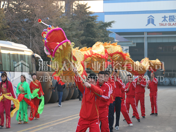 餐后職工及家屬們在生活區(qū)廣場上打起鼓來敲起鑼,舞龍秧歌放煙花。共同祝愿太極搪玻璃設備公司的明天更加燦爛輝煌。