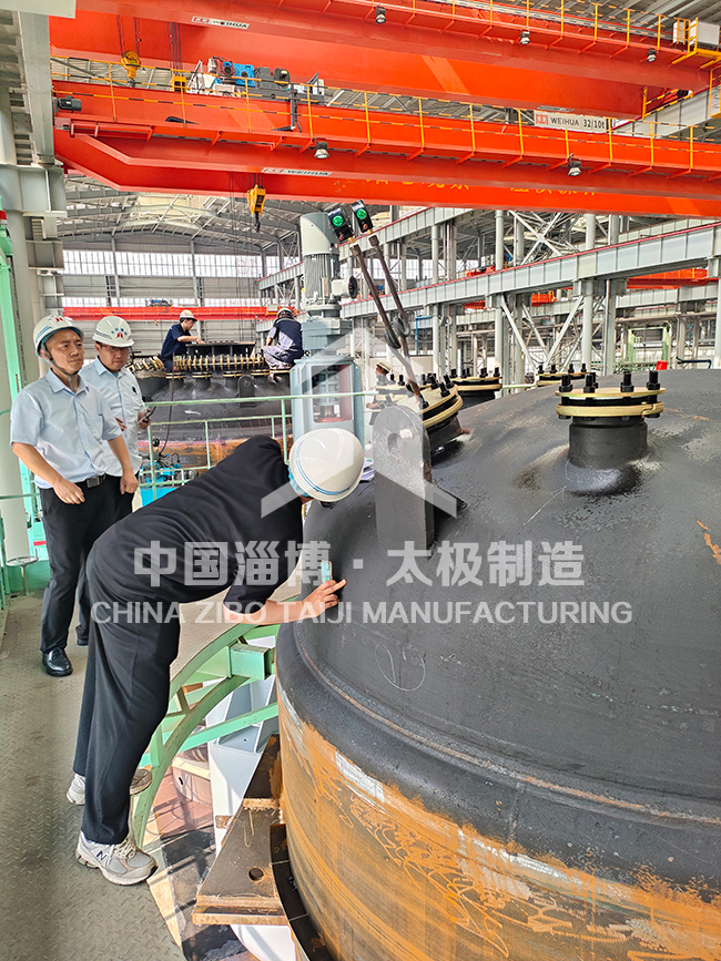 此次國外客戶定制的6臺國際標(biāo)準(zhǔn)的搪玻璃反應(yīng)釜,在連續(xù)3天的 “品質(zhì)攻堅戰(zhàn)” 中,都經(jīng)歷了如同 “闖關(guān)” 般的嚴(yán)苛檢驗。面對國外質(zhì)檢工程師近乎 “挑剔” 的標(biāo)準(zhǔn),對于罐體的精密測量、瓷釉厚度及導(dǎo)電檢測、管口定位校準(zhǔn)等嚴(yán)苛考驗。